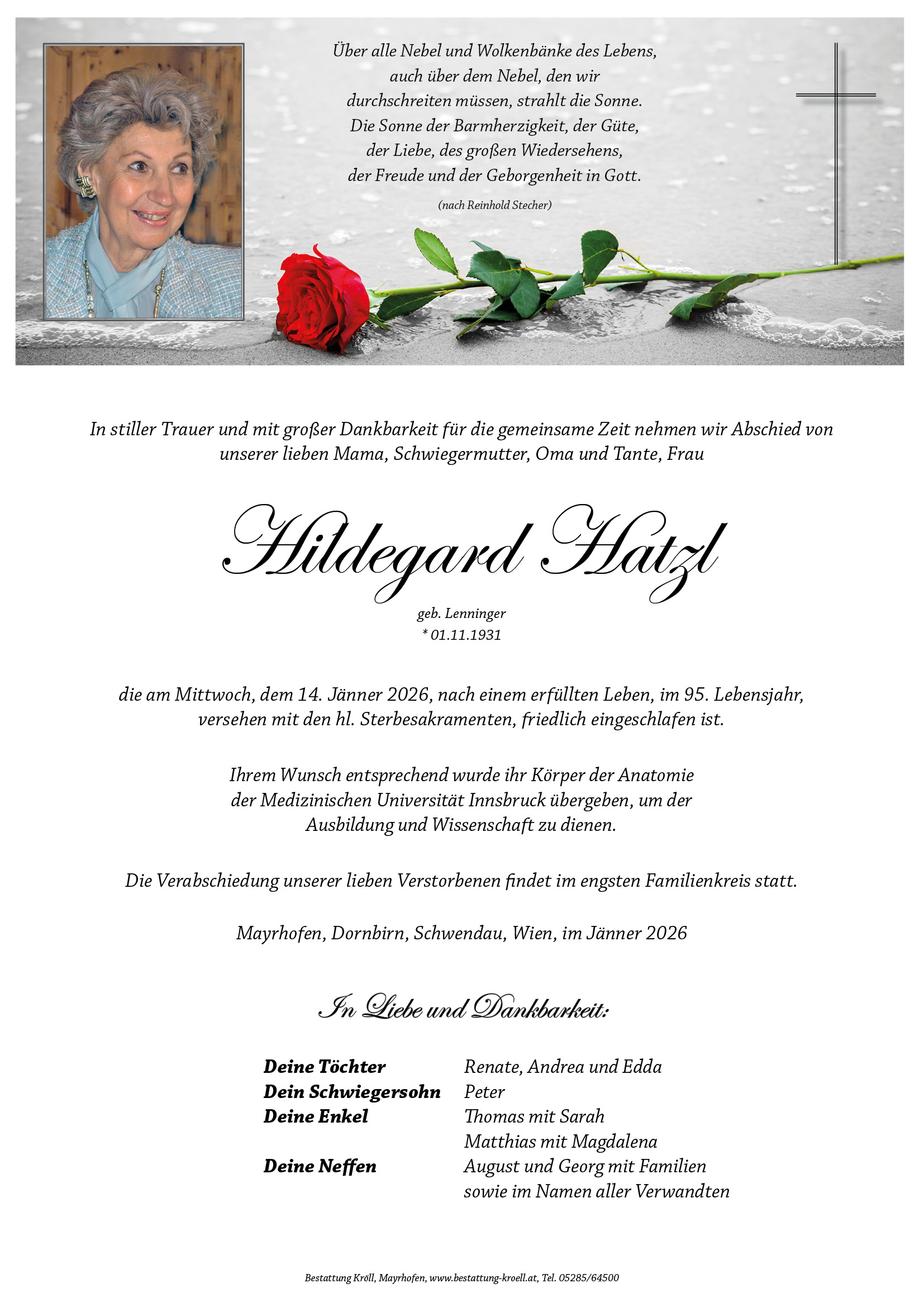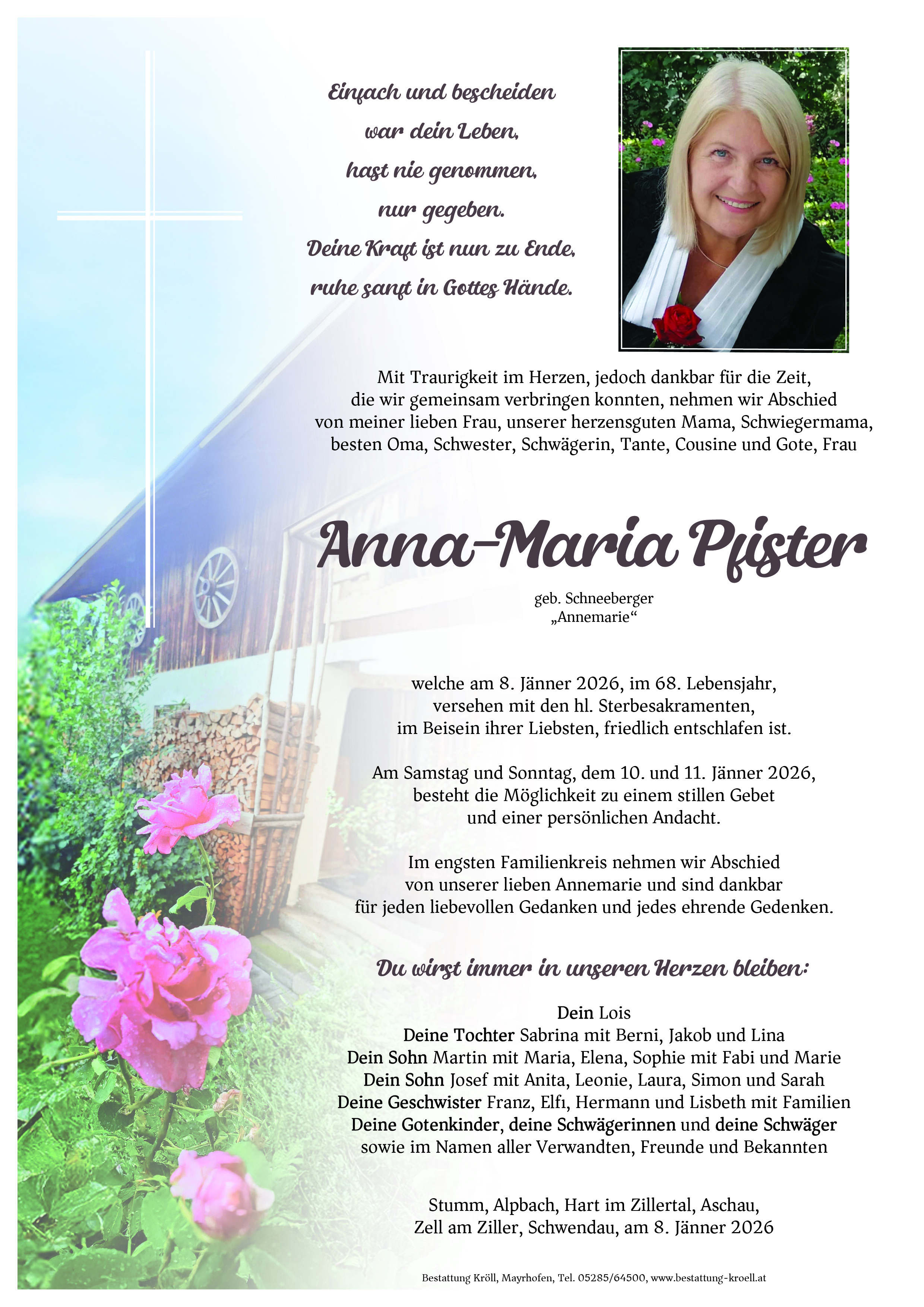 Wir sind für Sie da: 05285/64500 oder office@bestattung-kroell.at